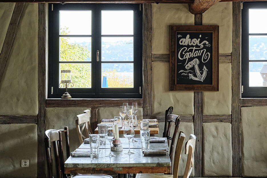 Dès la mi-octobre, quand la météo devient plus fraîche, Katharina Roulet et son équipe se déplacent dans la bâtisse à colombages d’en face, qui héberge le Hafenbeiz. L’accès au restaurant se fait par le jardin d’hiver à l’ambiance tropicale, orné de plantes luxuriantes et baigné de lumière. Le restaurant dispose d’un total de 80 places assises réparties sur trois étages dans des salles romantiques aux lumières tamisées. Durant la saison froide, on y sert des plats réconfortants – classiques suisses comme les cornettes à la viande hachée ou fondue sont au menu. Beaucoup de membres de l’équipe travaillent ici depuis des années. Cela se ressent d’une part à travers un esprit d’équipe solide et une bonne ambiance. «Nous sommes comme une famille. C’est très précieux d’avoir une si bonne entente dans l’équipe», souligne Katharina Roulet.