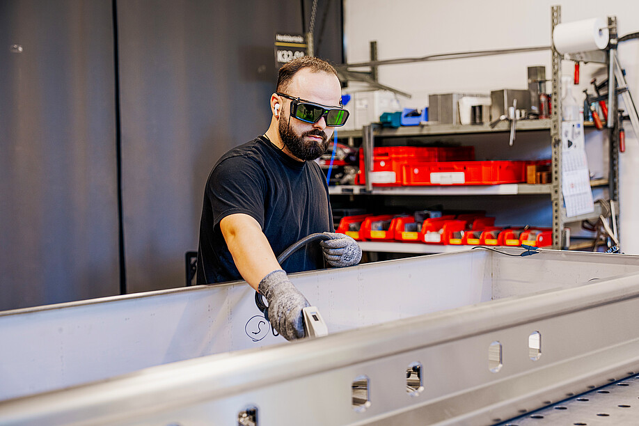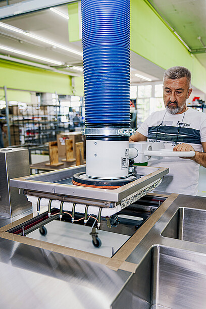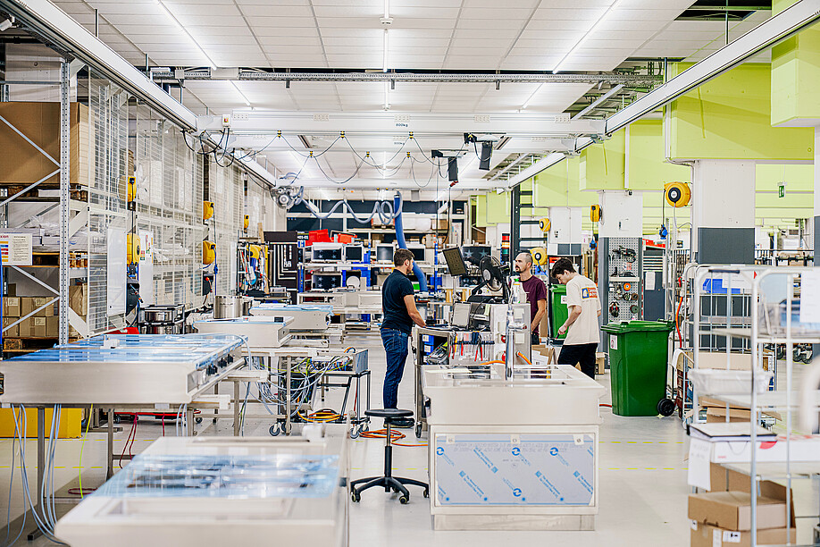 Avant qu’une cuisinière soit installée, de nombreuses étapes de travail et le savoir-faire de plus de 80 collaborateurs sont nécessaire. Nous nous rendons à l’autre bout du hall, où tout commence. Durant la crise sanitaire de 2020, 900 m2 de surface supplémentaire ont été loués ici afin de réagir à une croissance continue, d’augmenter les capacités de production et de garantir des processus clairs et propres. La propreté des postes de travail, organisés selon un système précis en cinq points, impressionne: trie et élimine ce dont tu n’as pas besoin, ordonne et place tout à un endroit attribué, nettoie toi-même ton poste et tes ustensiles de travail afin de repérer les défauts, standardise et uniformise, fais preuve d’autodiscipline et améliore-toi constamment. Pourquoi ce système? «En trouvant directement ce dont tu as besoin, tu es tout simplement plus efficace et plus concentré», justifie sobrement le Dr Paul Schneider.
