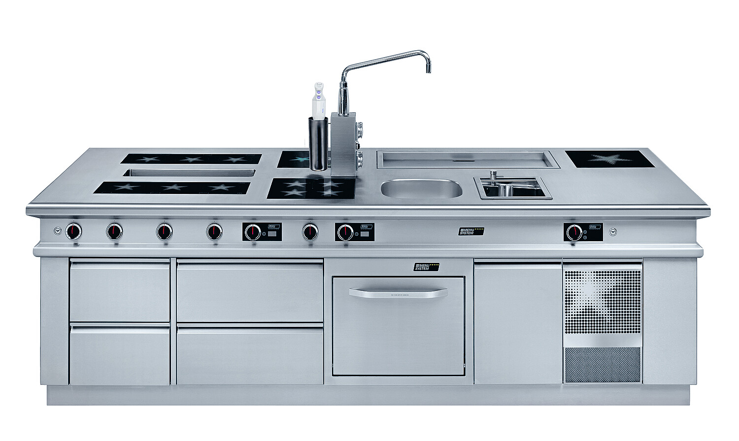 Une visite à l’usine de Menu System AG permet aussi de se délecter du panorama sur la ville de Saint-Gall à travers les grandes fenêtres – une vue que l’on trouve rarement dans un hall de production. «Un bon climat de travail est extrêmement important pour moi, cela passe par l’éclairage à la lumière du jour, l’insonorisation, la qualité de l’air et une infrastructure moderne. C’est ainsi que nous pouvons attirer la main-d’œuvre de qualité dont nous avons besoin ici», explique le Dr Paul Schneider. Il est l’unique propriétaire et directeur de Menu System AG, le leader de la qualité et du marché des cuisinières à induction professionnelles sur mesure. Nous nous trouvons devant l’une des cuisinières, de l’eau y bout dans des casseroles. Elles est testée une dernière fois avant la livraison, l’installation sur site et la mise en service par les professionnels de Menu System. L’indication de la température, sélectionnable au degré près, est-elle correcte? Le mode de puissance en continu, le niveau chocolat pour une puissance minimale, le SlideControl pour une cuisson intuitive ou la reconnaissance du type de casserole fonctionnent-ils?