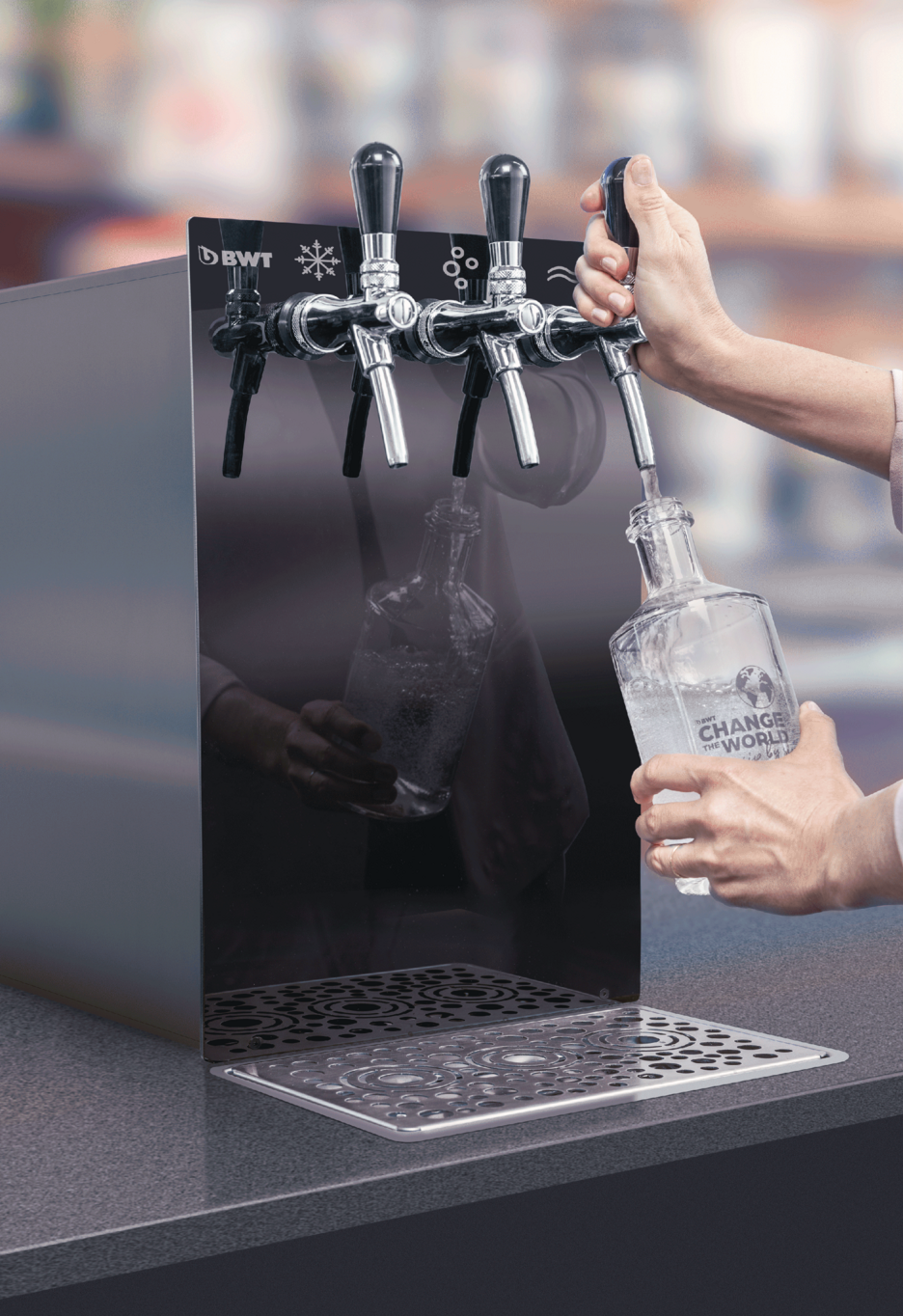 Le BWT WasserBar permet de filtrer l’eau du robinet et de l’enrichir en magnésium tout en offrant différentes options: plate, pétillante ou réfrigérée. Conçu spécifiquement pour la gastronomie, il permet de fournir de grandes quantités d’eau en un temps record. Le transport et le stockage appartient au passé. Moins de manutention pour les équipes, moins de déchets et une consommation d’eau maîtrisée: autant d’atouts qui facilitent le quotidien des professionnels tout en réduisant les coûts.